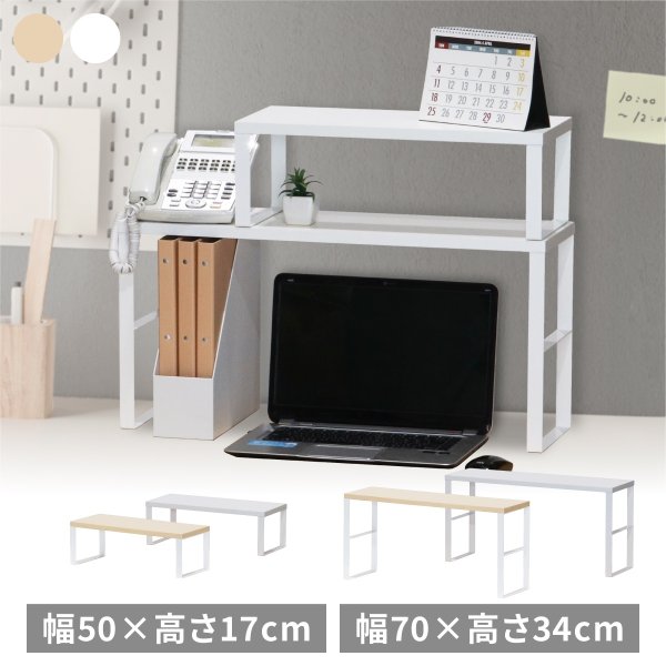 デスクの幅や収納物に合わせて選べる、シンプルな机上棚の2種類を同時発売。