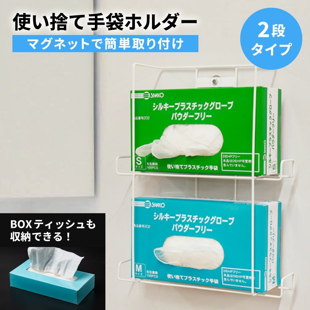 | 商品説明 | 医療現場では欠かせないビニール手袋やティッシュなどを、簡単にスマートに収納できます。 マグネットで取り付けるのでピタッと手軽に設置できます。 |